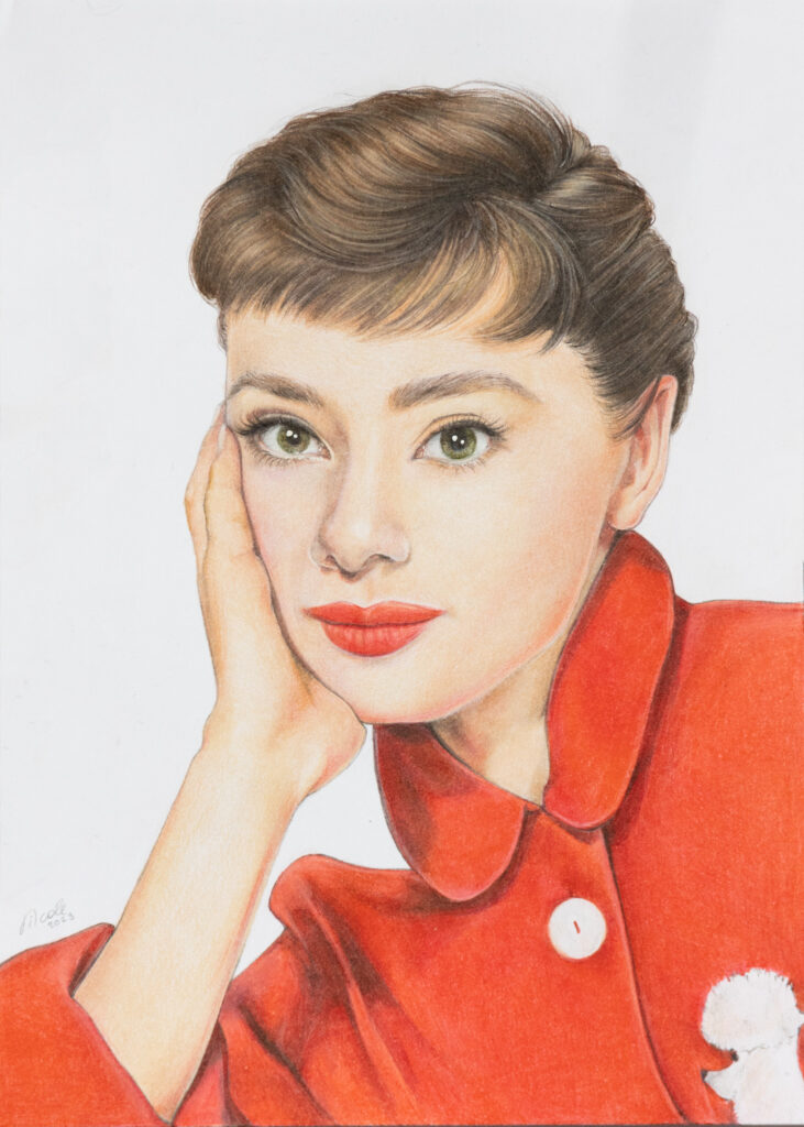 After the portrait of Marilyn Monroe was completed, I started this drawing of Audrey Hepburn.