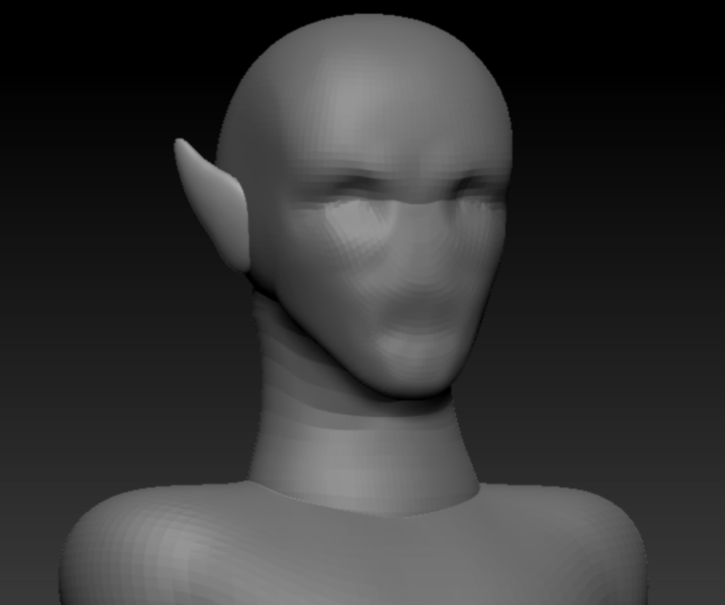 The facial structure was roughly blocked in using deformed and shaped spheres, prior to working out the details of the face.