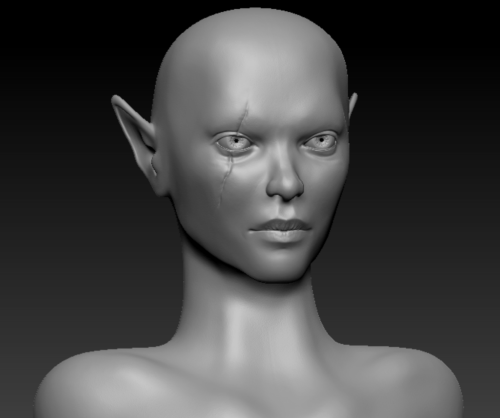 The first step was to model and texture the bust in Zbrush. For the hair I used Fibermesh.